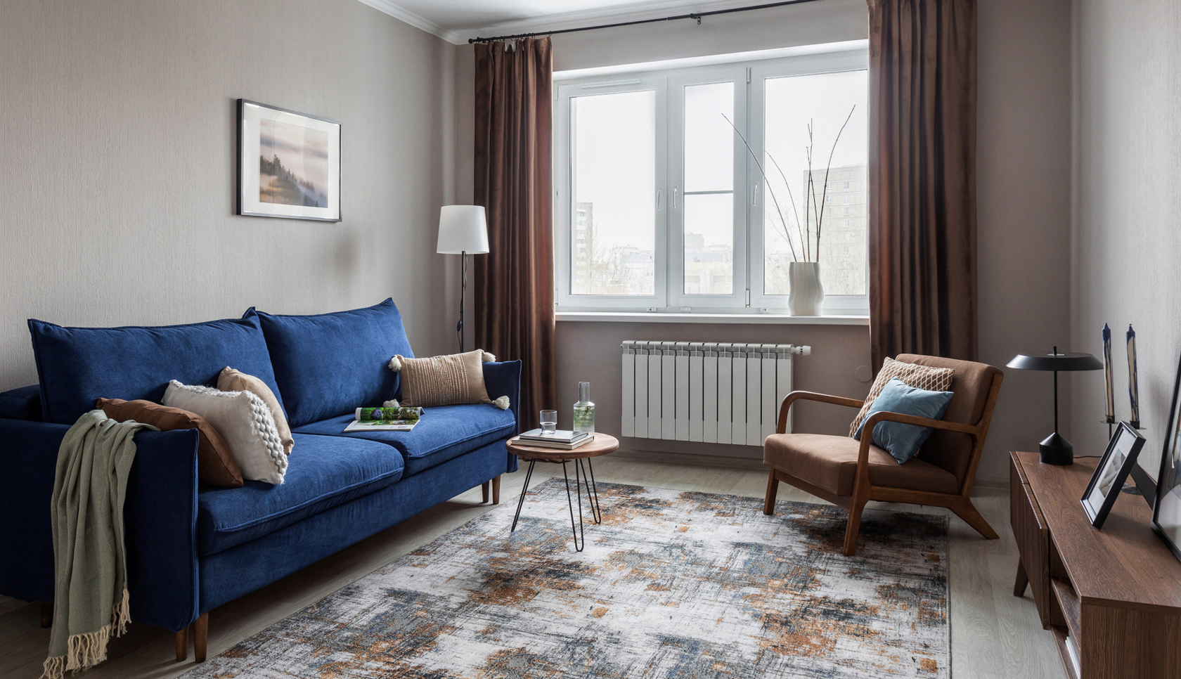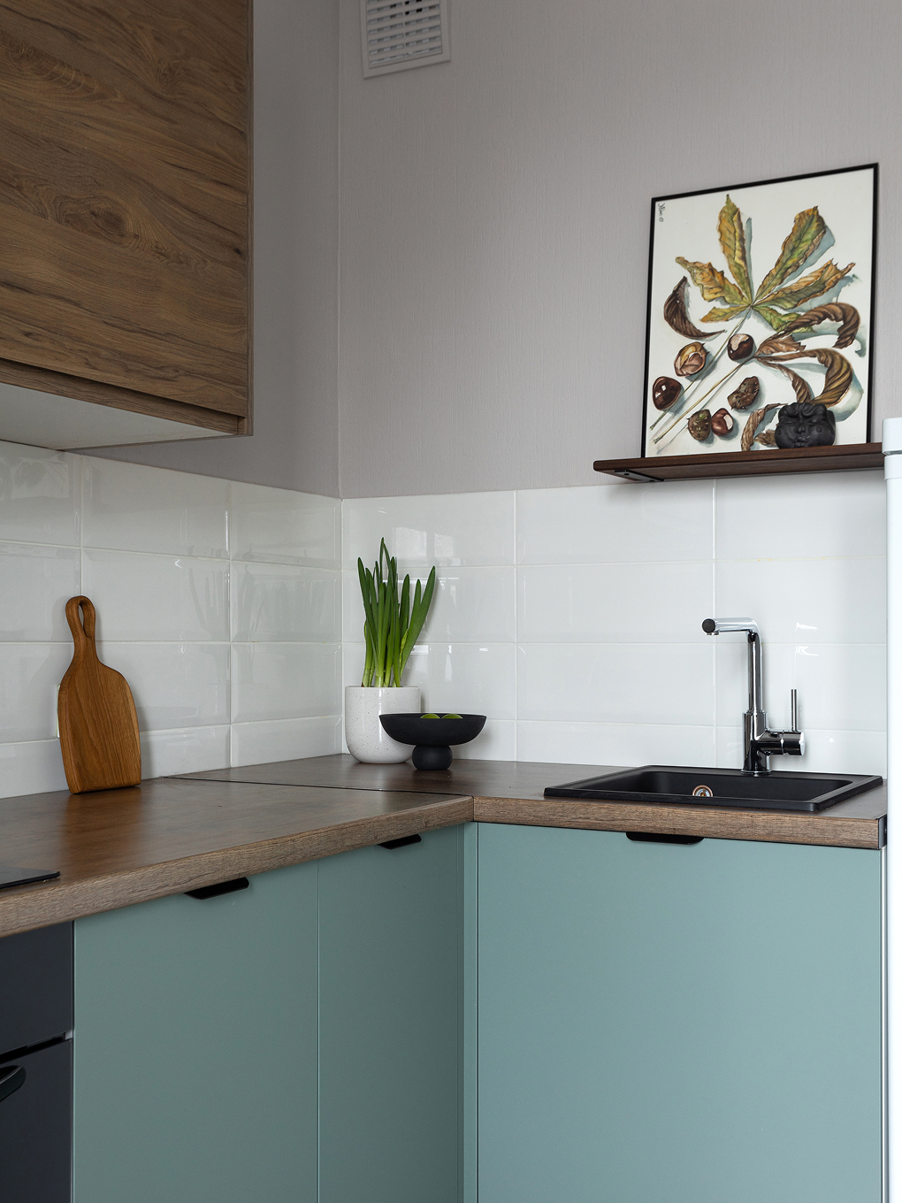 Поэтому для того, чтобы оживить пространство и придать недостающий объем и глубину, мы добавили немного цветовых акцентов.